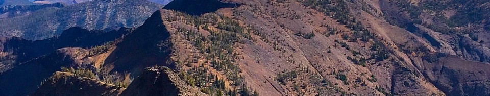 There are 35 points in Idaho which are identified as Red Peak or Red Mountain or Red “something.” This one is found in the Frank Church River of No Return Wilderness east of Yellow Pine, Idaho. Visit the Red Peak Benchmark page for information on the naming of peaks in this area as well as access. The peak is paralleled by deep canyons. The only practical access is from Red Peak Benchmark as discussed in the book. USGS Big Baldy