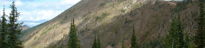 There are several trails leaving from the parking area. Take the one heading east, which drops into a basin. In about 3/4 mile, there is a junction. Keep left on the trail that generally contours between 6,400-6,600 feet for another 1-3/4 miles to Goat Lake. The mapped junction of FST-248 was not there, though we looked. The trail splits at Goat Lake, but the branches come together again soon. At the switchback on the West Side of Williams Peak, the trail joins an old mining road.