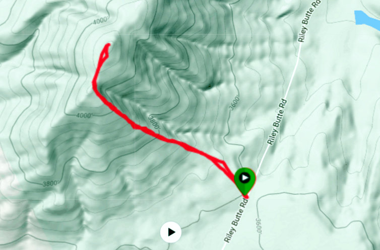 Google Maps gets you to Riley Butte Road on the East Side of the peak. Heading south on this road takes you through a cattle guard due east of the peak. Once on the South Side of the cattle guard, you are on public land and you can walk up to the summit from anywhere along the road. The road is passable for 2WD vehicles when dry. There are great views of the Hitt, Cuddy and West Mountains from the top. Class 1-2. USGS Riley Butte