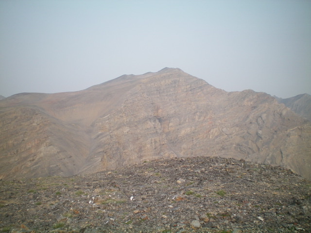 Ross Peak (dead center) as viewed from Last Lost Peak to its east. Livingston Douglas PhotoRoss Peak as viewed from Peak 11240.This photo was taken from the south end of Massacre Mountain at around 10,800 feet. It looks across Hell Roaring Canyon and Shadow Lakes to the North Face of Ross Peak (7/13/97). Rick Baugher Photo