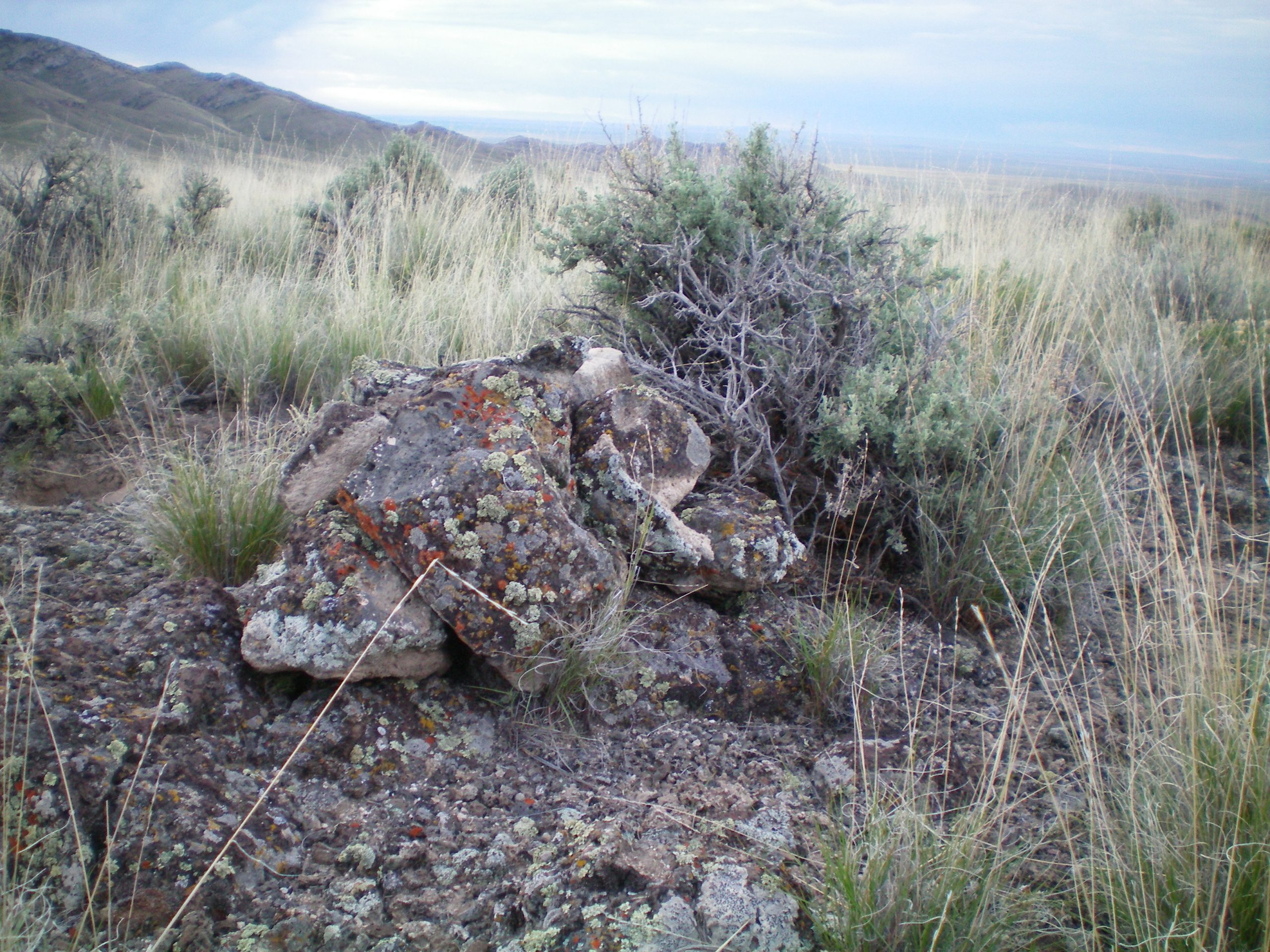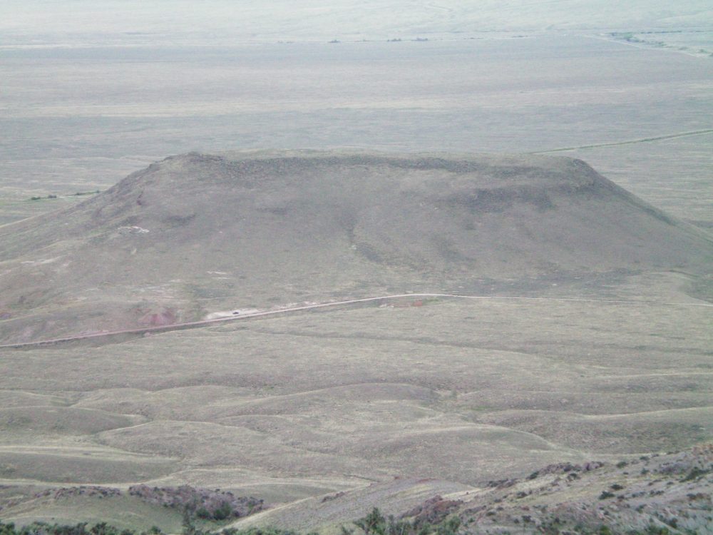The flat-topped butte is massive and is covered with short, clumpy field grass and broken scree. I built a small cairn on top with the few loose rocks that I could muster up.