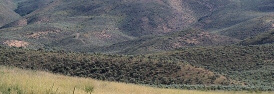 On 7/15/13, I approached from the southwest by driving east up Bear Hollow Road. This is a well-graded but unsigned County Road crossing private range land. As the road enters the Sheep Creek Hills, it becomes eroded, especially so as the track turns north to gain elevation. I parked around 7,200 feet and hiked north.