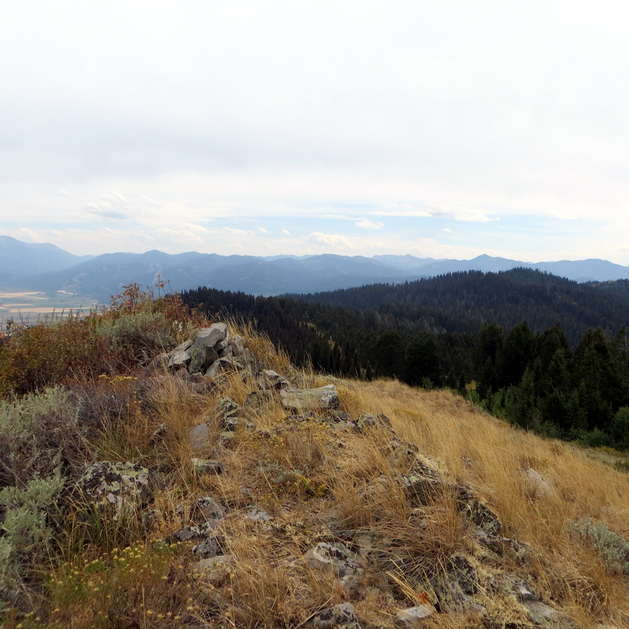 After summitting Peak 7906, drop back down to FST-076/FST-240 and backtrack (northeast) until you return to the intersection mentioned in the previous paragraph. Now, turn southeast and begin a steep ascent that takes you back to the intersection of the Corral Crest Trail and the Big Hole Crest Trail. Continue back on FST-217 to FST-238 and the Drake Creek trailhead. Note: It is probably not much shorter, but the three-peak loop can be done from the Grove Creek trailhead. There are some nice views of the Teton Mountains and the Teton Valley from all three of these peaks.