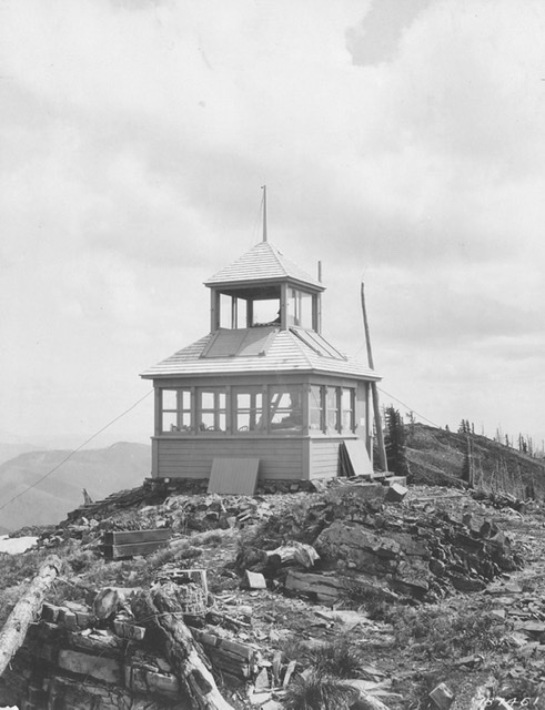Striped Peak is a former fire lookout site located on the Saint Joe Mountain crest due south of Osborn, Idaho. In 1936, the lookout was destroyed by a wildfire. Although the lookout was never rebuilt, the view from the top is still worth the hike to the summit. USGS Wallace