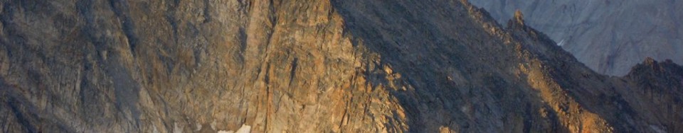 From Tin Cup Lake [(B)(2.1)(a) see below], walk up towards the saddle west of the summit. Do a rising traverse above cliffs onto the Northwest Face. A series of ledges, ribs, and gullies (Class 3) crisscross the face. Stay well below the crest, ~100 feet or so, to avoid ridge towers. Just west of the summit, cross a prominent rib at a notch. Ascend the dirty Class 4 gully to the east of the summit. Then climb the East Face to the knife-edged summit. To descend, scramble down the West Face to a notch and rappel the Class 5 gully just west of the summit. A 60M rope is adequate.