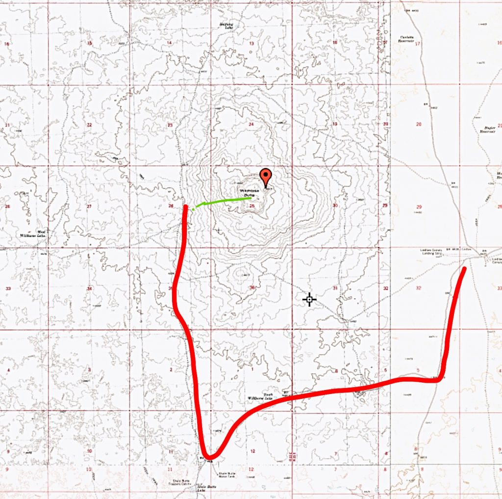 I used Google Maps to access the peak. Google got me to an airstrip on the East Side of the peak. From that point, we followed the route shown on the map below.