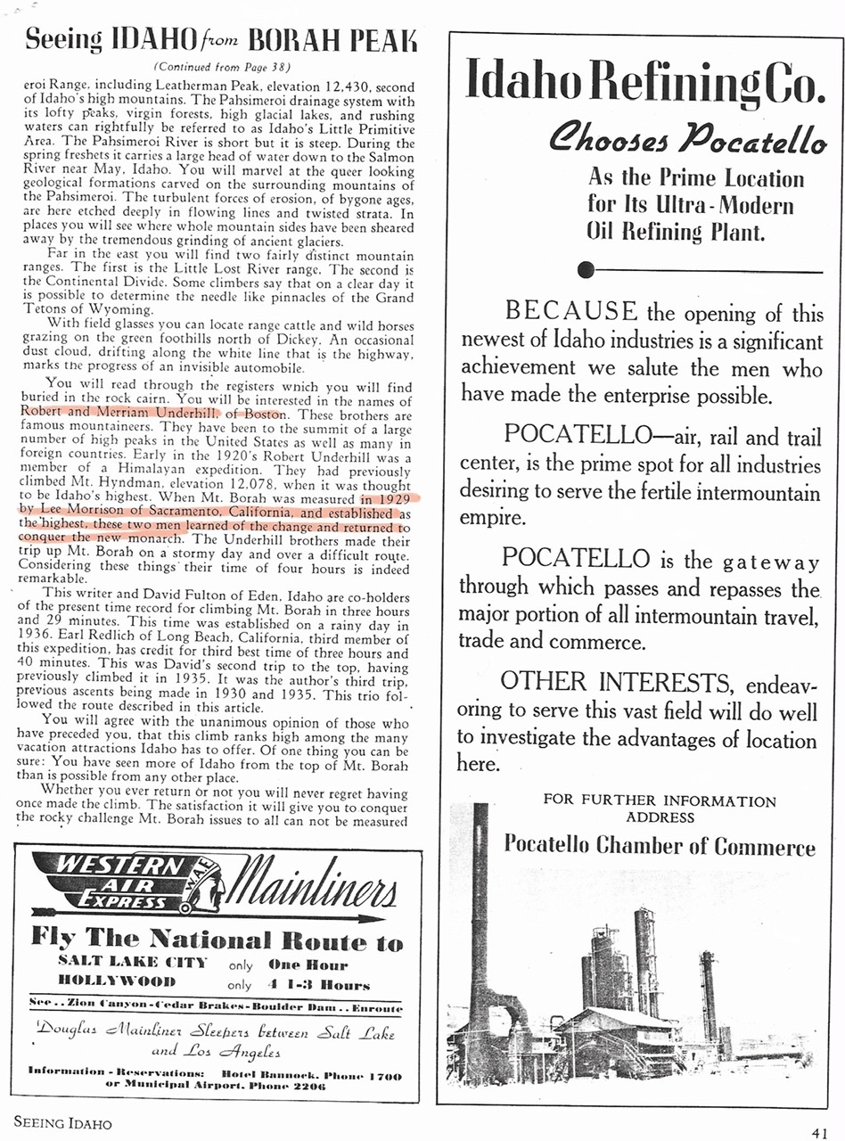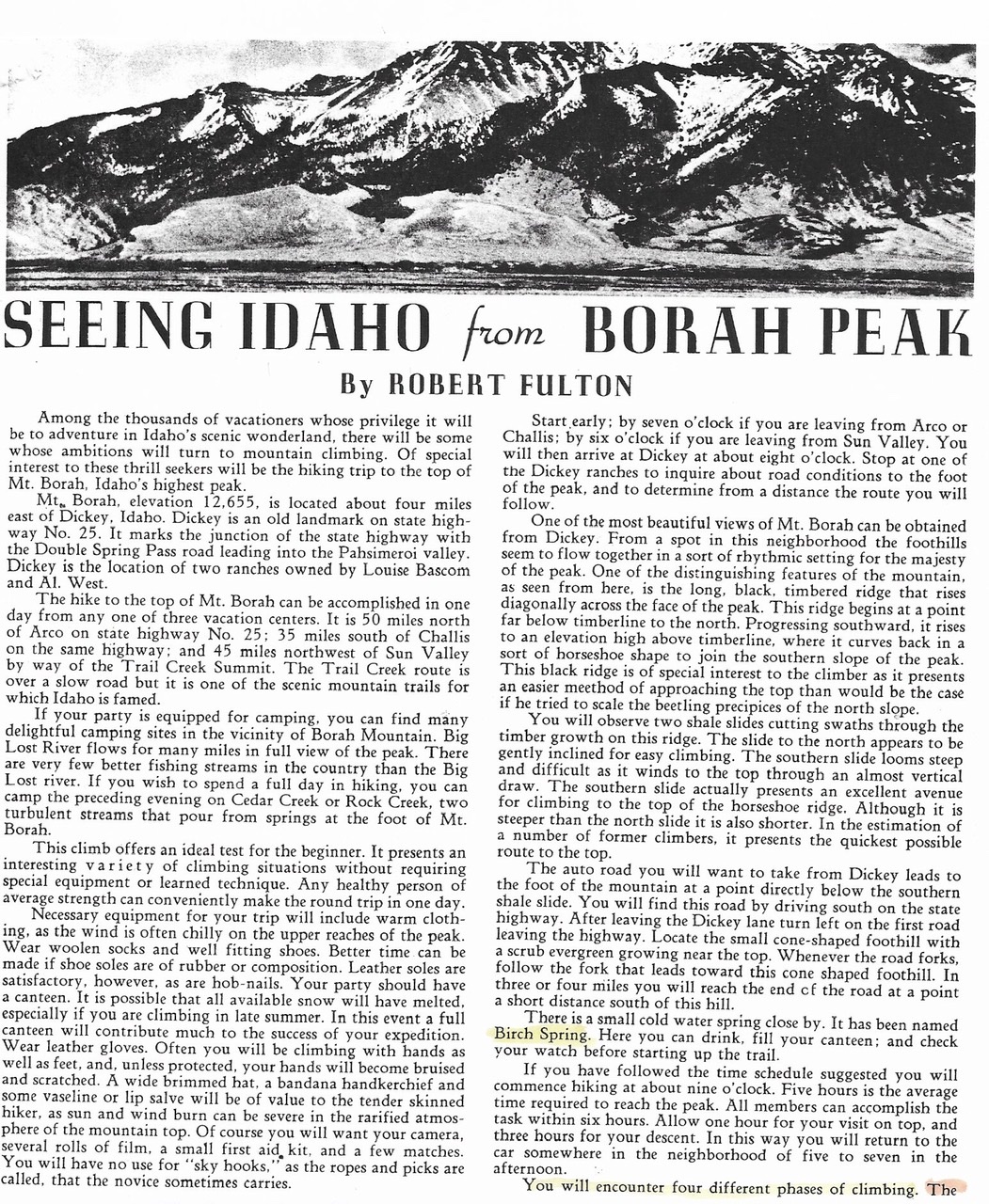 [Editor’s Note: In 1938, Robert Fulton published this article in Seeing Idaho, a long defunct magazine that focused on the state’s wonders. Clicking on a page will provide a larger version of the page.]