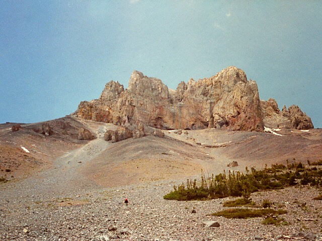We found a stump and Carl stacked bread as if they were pancakes. In between each layer of bread he dumped a couple of tablespoons of cayenne pepper and then topped it off with a generous helping of honey. Chuckling, we headed back to camp. Figuring the bear wouldn’t find the bread for a while, we sat around talking about our adventure. We were wrong again. It took the bear only about thirty minutes to discover his snack, and he was very annoyed. As he came out of the brush above our camp, he was ripping leaves off the bushes. We could see he had a mouthful of leaves and the hair on his back stood up. He snorted around and wouldn’t leave, which made us nervous, so we decided to use the African bush-beating method we’d seen on TV to chase him off. We all picked up our ice axes and at the word “go,” we charged toward him. We got about halfway to where he was sitting when he reared up on his hind legs and charged us. We turned and ran as fast as we could back to our camp. Luckily, his charge was a bluff, but he would not let us out of his sight. We agreed that maybe it wasn’t a good idea to stay there for the night. Under the watchful glare of the bear, we packed and hiked back to Grandjean.