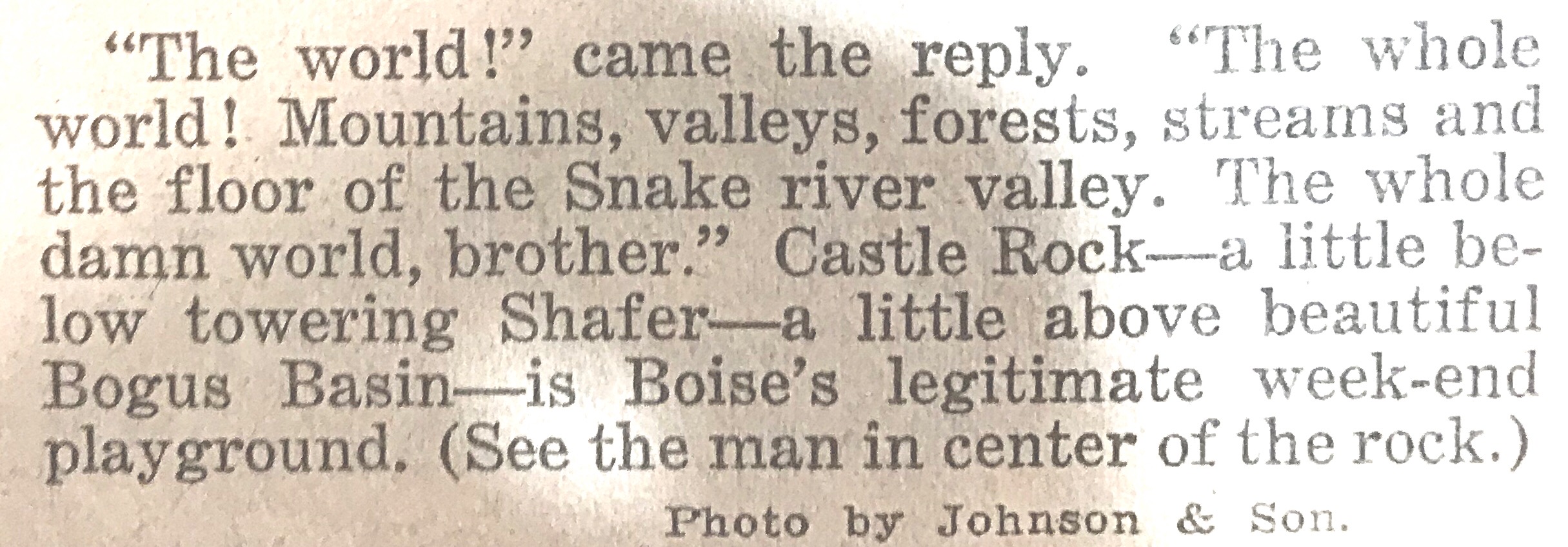 Our trip was one year after I had started rock climbing, and because we had pack mules to haul our loads on this trip, I had decided to take my rock gear along. I also kept an eye out for opportunities for future trips and wasn’t disappointed once we passed Fern Falls on the South Fork of the Payette River. As we rode farther up the trail, I gawked at the granite formations on the east side of the valley and thought, “Wow.” One formation in particular stood out. I shot photos and vowed to come back to it with my rock-climbing buddies. The first name for it that occurred to me was King Kong, which stuck, although we later shortened it to Kong.