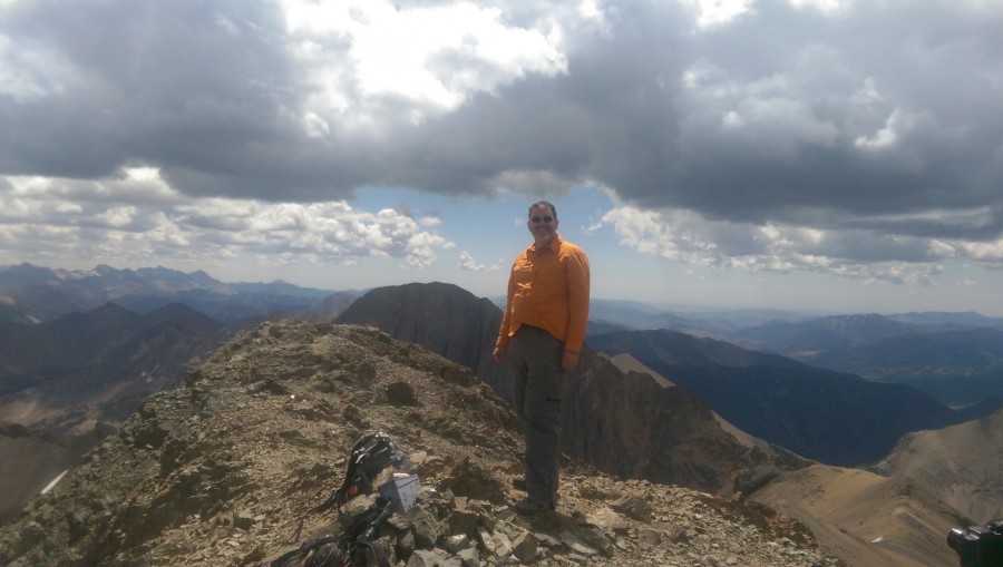 By the time the four of us down-climbed to our bivy ledge the sun was starting to set. We ate and settled into our respective spots. Soon it got dark and the wind began to blow in earnest. We saw the first of many flashes as a thunderstorm rolled in from the west. Rain poured down and the wind whipped up to about 50 m.p.h. We huddled in our spots and, in case we took a hit, we said goodbye to each other over the howling wind. Lightning struck below and above us. Rain hit the rocks in sheets and for maybe ten minutes it went up the mountain instead of down it. It then changed direction and poured downward for at least another half-hour. Lightning flashes that illuminated the entire mountainside left us temporarily blinded. There was no pause between the lightning and thunder, only loud explosions and an acrid smell in the air. Finally, the storm passed, and we were all okay. I later realized we had gone through a vertical wind shear, where the wind blows up one side of a thundercloud and down the other. We had experienced both sides of the storm.
