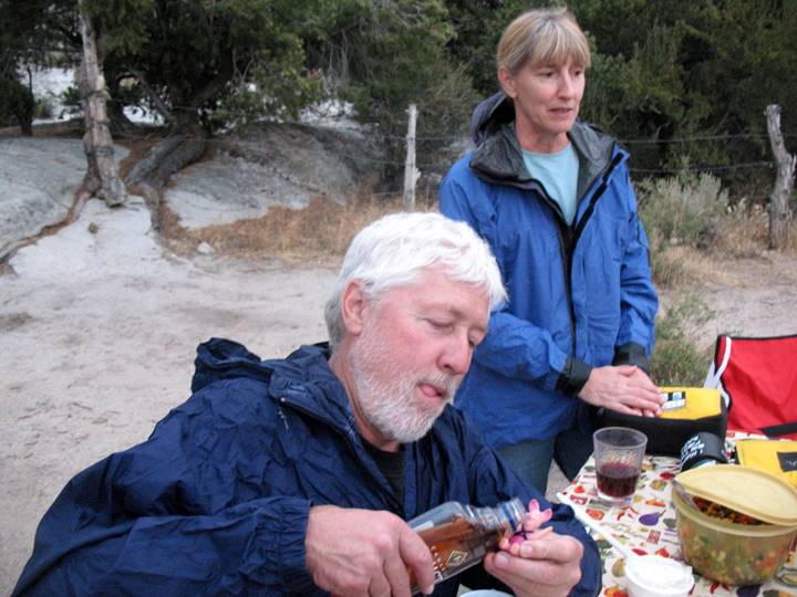 Here’s Gordon at the City of Rocks sharing a drink with Piglet while my wife Dorita politely averts her gaze.