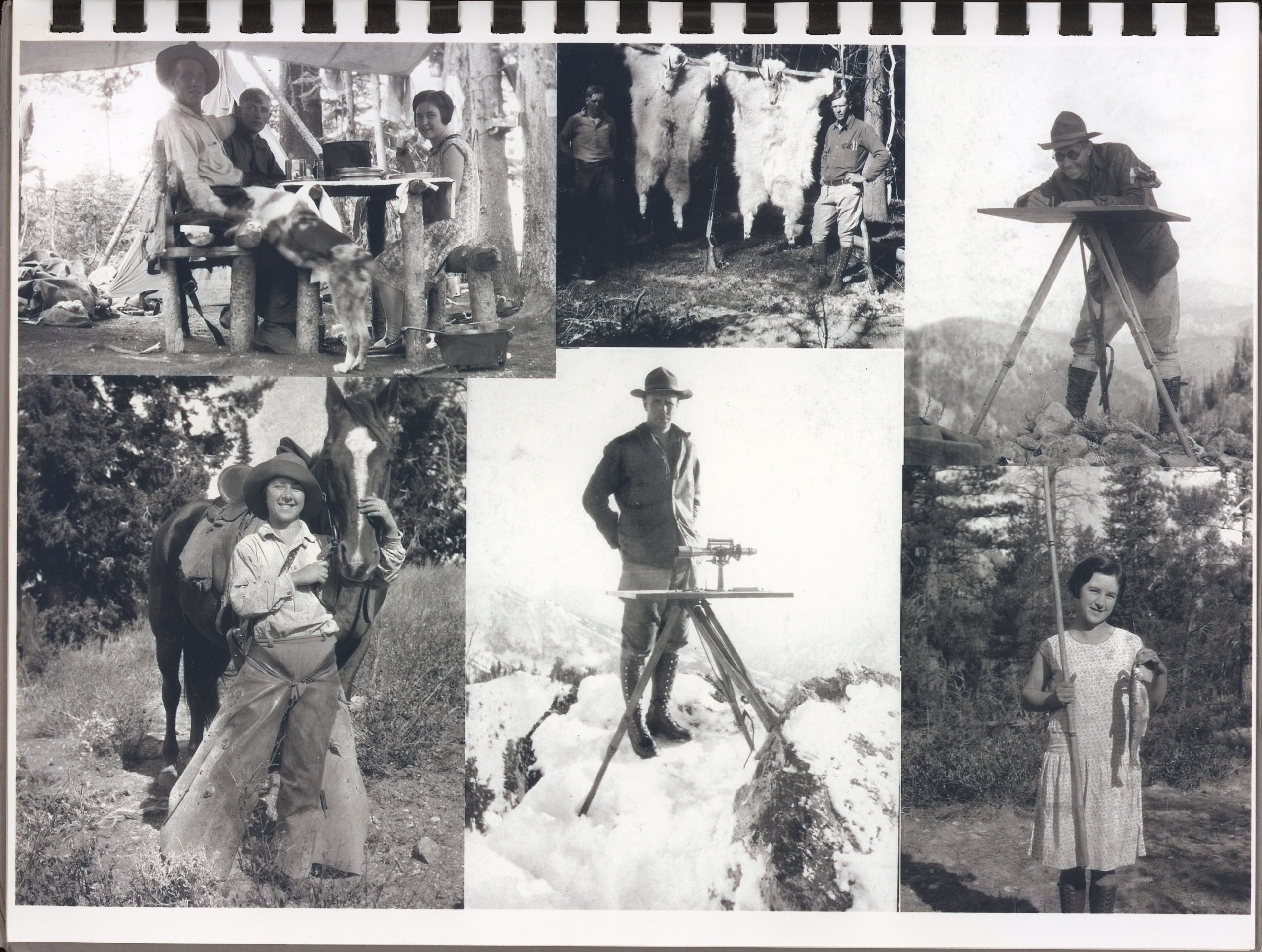 The other group of pictures show Arval on one of the peaks (possibly Arval’s Peak) with his plane table and alidade, and another of my mother Maysel with her horse. These were taken in 1927 while they were doing the mapping. I have other pictures from a number of trips there. I also have a copy of the autobiography done for the Forest Service that covers his entire career.