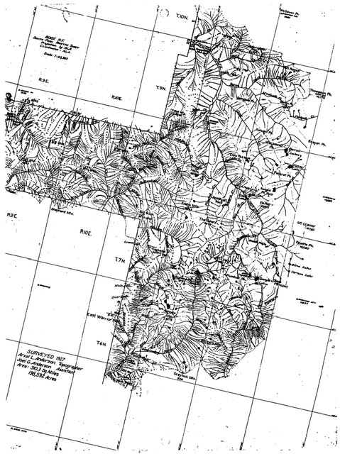 Besides locating the lookouts, the primary purpose of the triangulation was to establish control for a mapping project to be done in 1927. The area to be mapped included a total of about 600 square miles on the eastern side of the Boise National Forest. I was to map, by plane table method, 310 square miles on the northern part of this area, and another man. Major Simons, was to map the southern portion. Therefore, in addition to the goedetic computations. I prepared the plane table sheet on which I was to do the mapping in the field the following summer. About two-thirds of my area included the most rugged part of the Sawtooth Mountains. which are the most rugged in the state of Idaho.