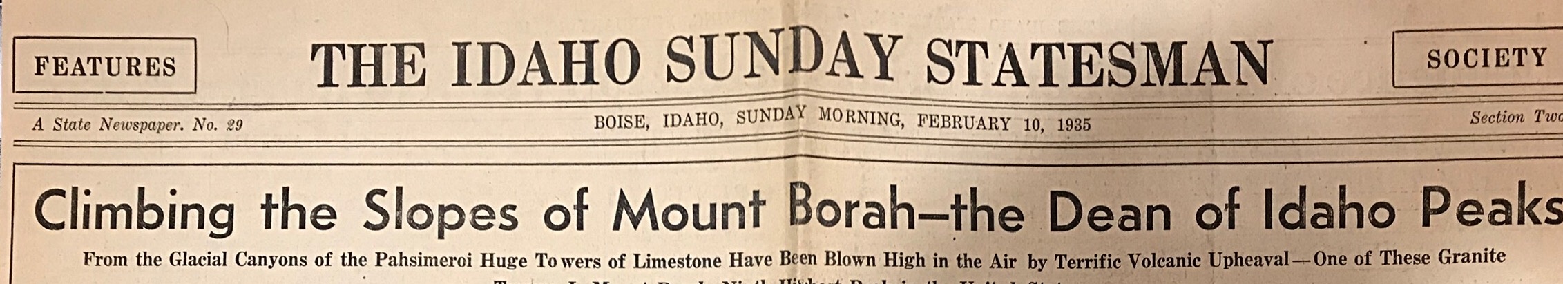 Editor’s note: This article from The Idaho Statesman (February 10, 1935) was written by Lyman Marden, one of the participants in the 1934 USGS mapping of the 15-minute Mount Borah quadrangle.