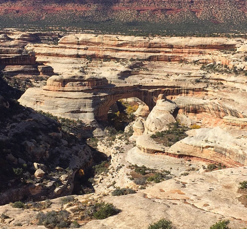 We seldom take the most direct route. We decided to visit Rainbow Arch National Monument. The state highway turned to dirt and ascended what appeared to be an impregnable cliff. Photos just don’t do the climb justice.