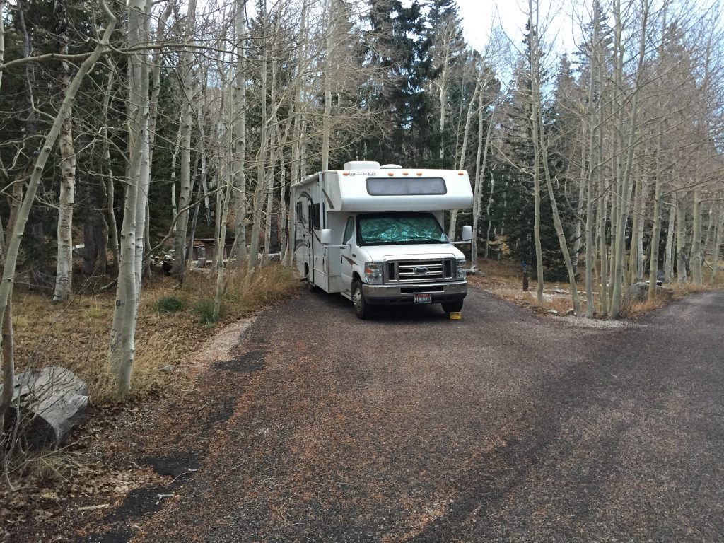 October 27. A long day driving from the City of Rocks to Great Basin National Park. We drove all the way to the campground below Wheeler Peak at 10,000 feet. There is snow on the North Faces of the peaks in this area. I suspect that it will get cold tonight. The road up here is amazing and is about all the motorhome can handle.