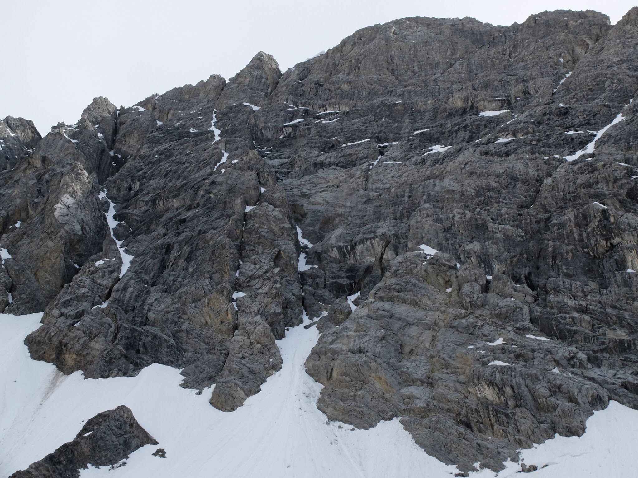 Pitch 5 (20 meters): A short, steep snow slope to the base of Pitch 6.