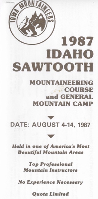 The Iowa Mountaineers climbing club was a major player in the in early Sawtooth Range exploration. The club was founded by John and Ede Ebert in 1940, as the University of Iowa Mountaineering Club. The club later incorporated as a not-for-profit Iowa corporation and became a major force in sponsoring climber education and expeditions throughout the world.