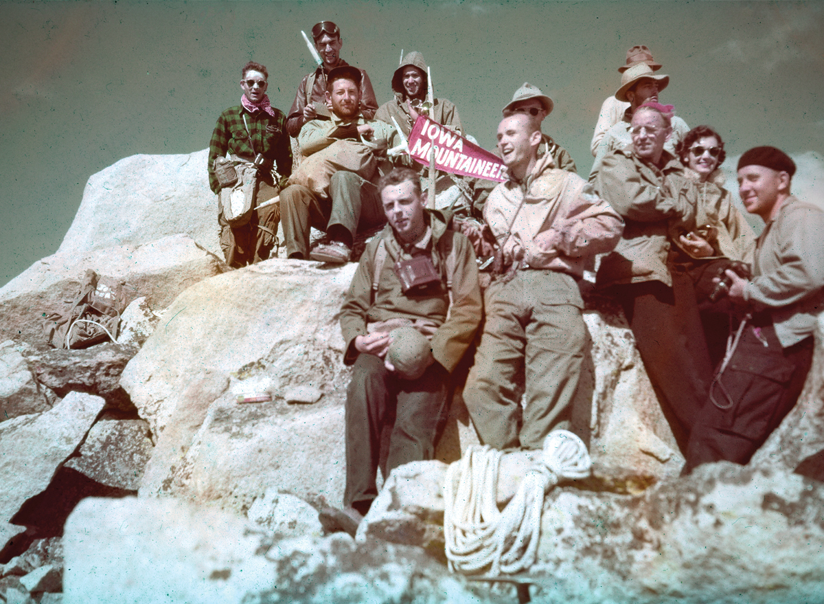 Schwartz Pinnacle, Harriets Pinnacle, Mount Bruce, Mount Ebert, the Elephants Perch and, of course, Mount Iowa all owe their names to the Iowa Mountaineers. You can read about the Club’s Sawtooth explorations and first ascents on Page 19 of the book as well as in numerous entries in the Sawtooth Range chapter. A 2018 article in the University of Iowa Alumni magazine provides a good history of the Club: Mountain Roots by Josh O’Leary.