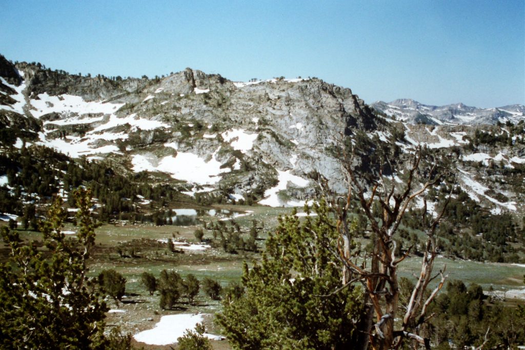 On Day 3, we hiked up and over Peak 10207 (which was the final peak) and then followed the trail, which soon leaves the crest to drop down to Overland Lake in a distance of 6 miles. Along this section, the trail loses 1,600 feet and then gains 850 feet before reaching the lake at 9,453 feet. Overland Lake is a scenic but rocky spot with only a few campsites.