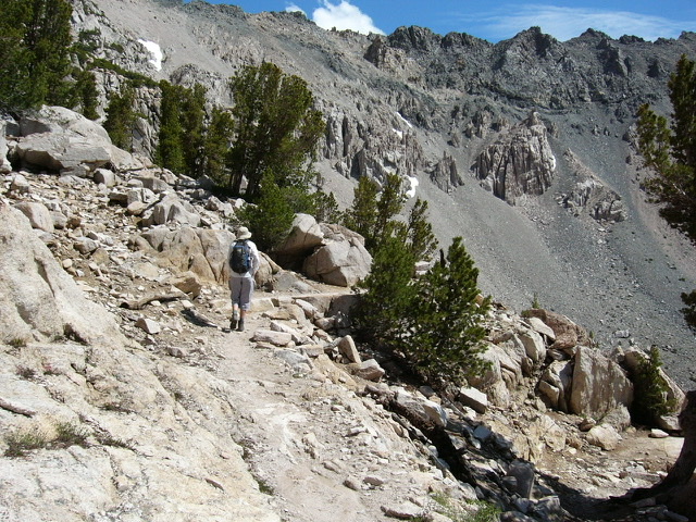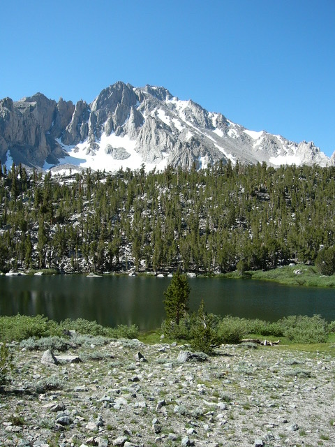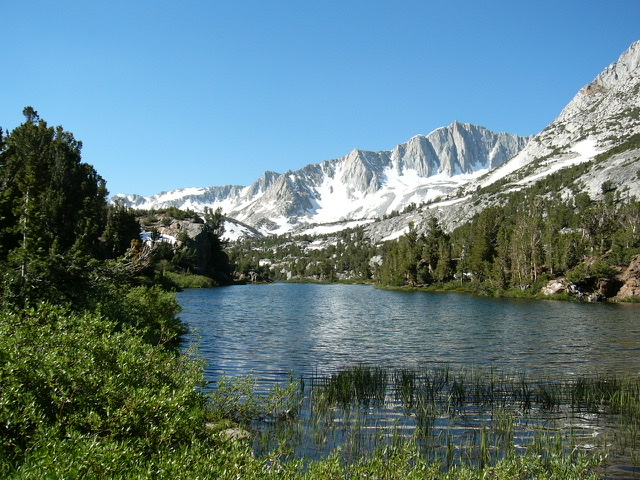 July 11th. Bishop Lake, 11.0 For our next hike I decided to head north to the Bishop Pass area. The Bishop Pass Trail is very popular since it leads to Kings Canyon National Park. On the east side of the pass South Lake and Long Lake are the two most visited lakes which are reachable by day hikers.