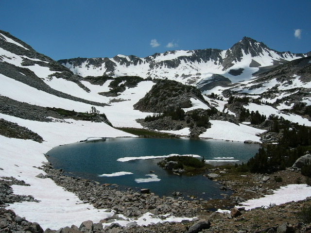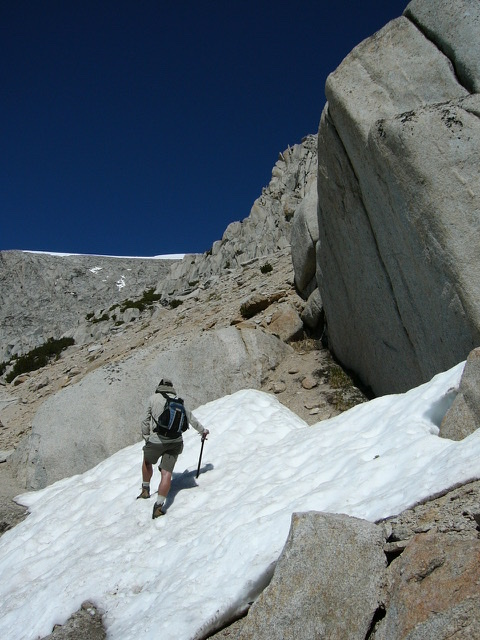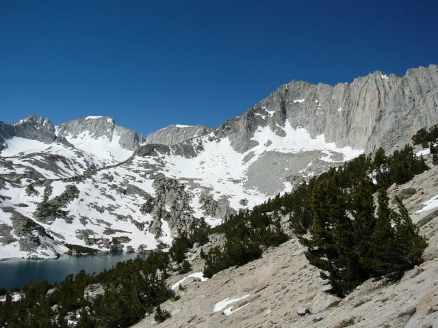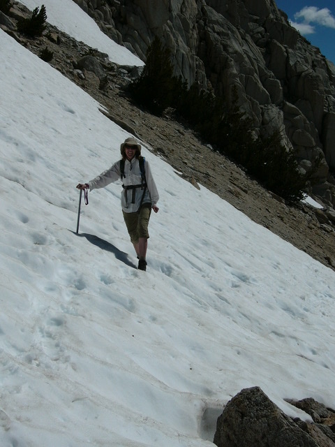 The 2005-2006 Winter brought a lot of snow to the Sierra Nevada Mountains. Laurie and I had originally planned an ambitious backpacking trip which would cross over Shepard Pass north of Mount Whitney and then moving into Sequoia National Park. However, in July the pass was still covered with deep snow. So we changed plans and decided to day hike the eastern side of the range.