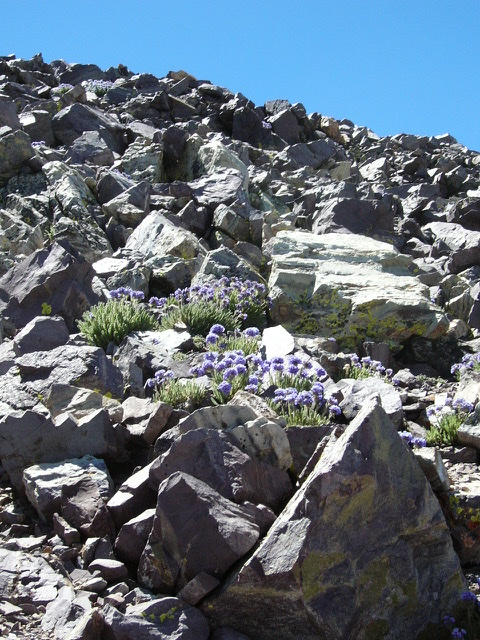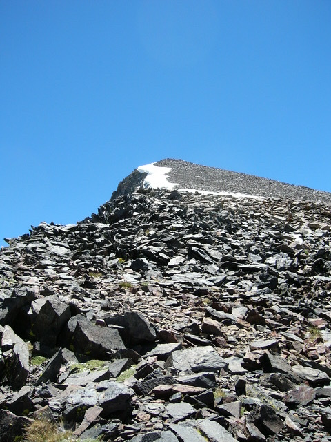 July 13th. We decided to climb Mount Dana, 13,157 feet. Mount Dana is one of the better know peaks on the Sierra crest in Yosemite National Park. The peak was first climbed in 1864 by Charles Hoffman and William Brewer. The peak is located south of Tioga Pass. We climbed the peak’s northwest slopes starting at the Tioga Pass Entrance Station. The only obstacle was a large snowfield which encompassed a long section of deep sun cups.