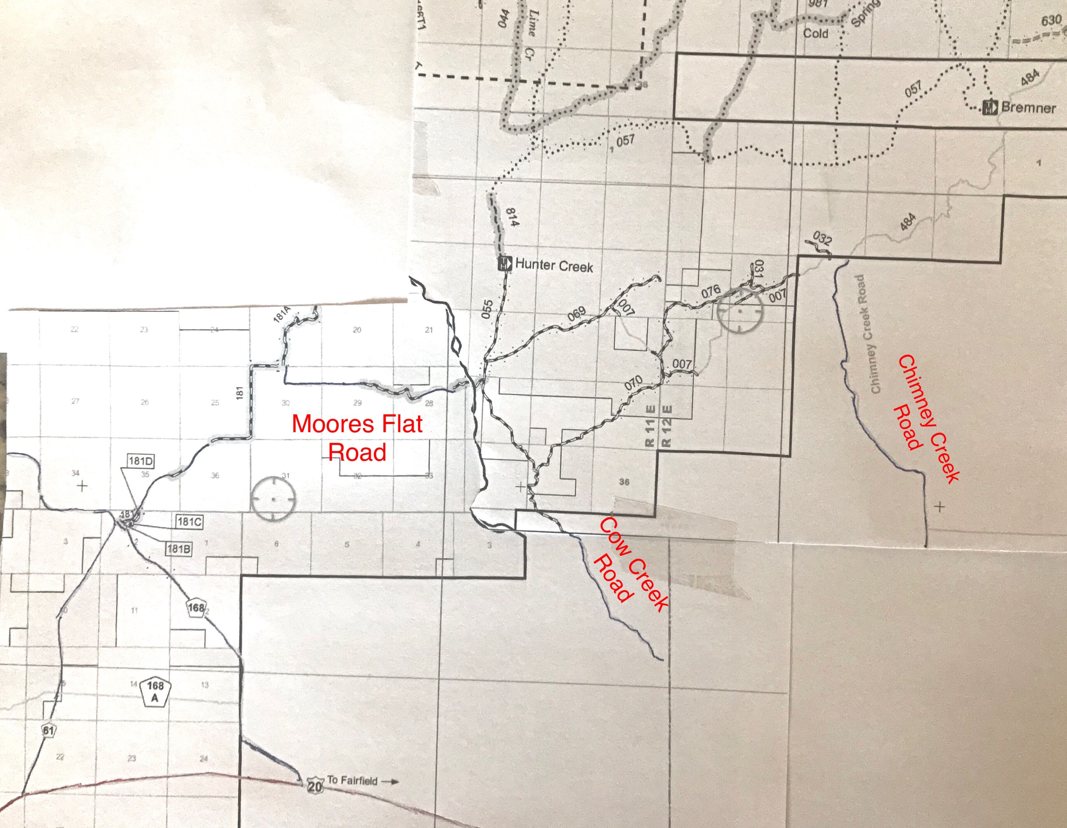 - The westernmost route is via the Featherville Highway/FH-61 and Moores Flat Road/FS-181