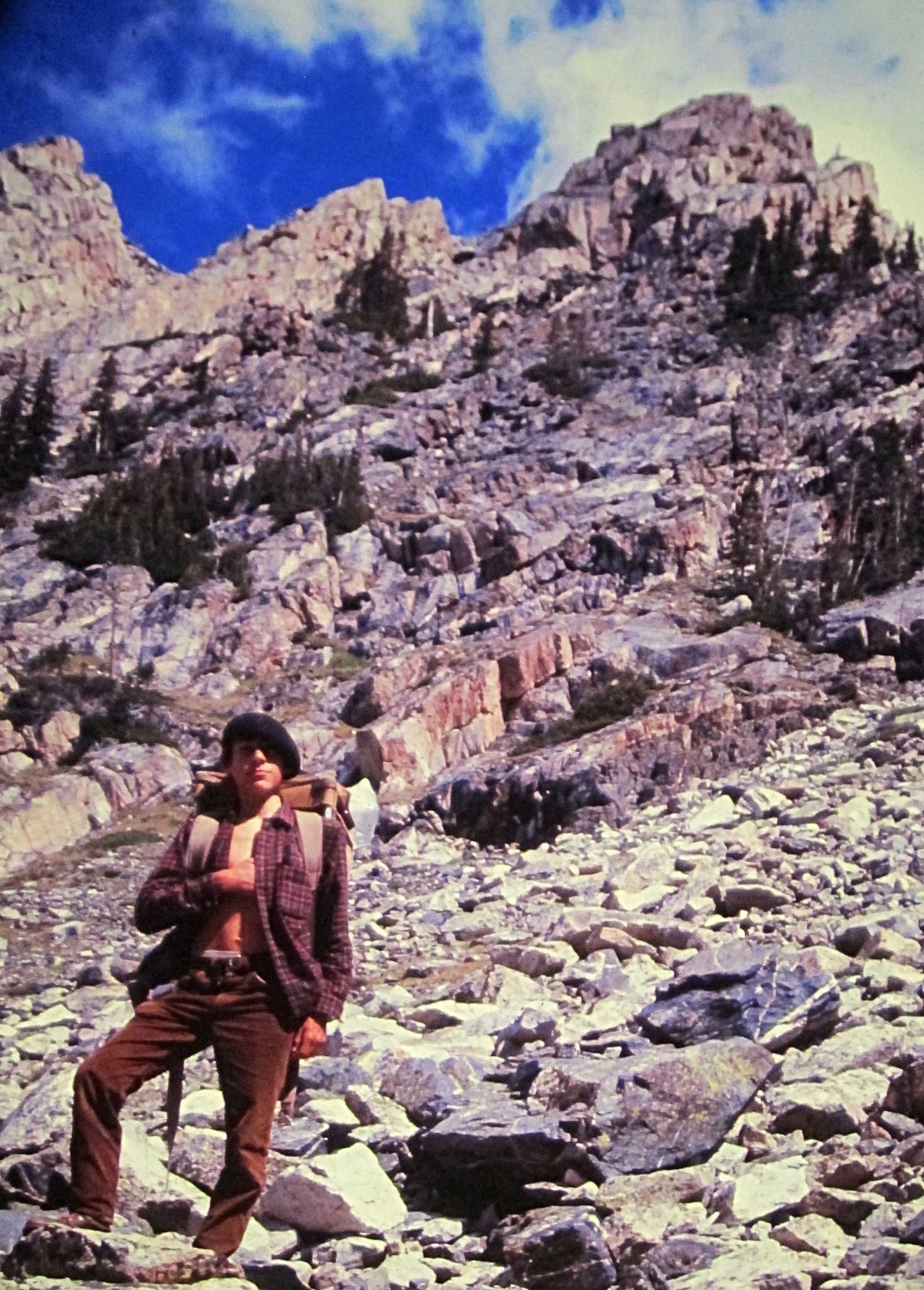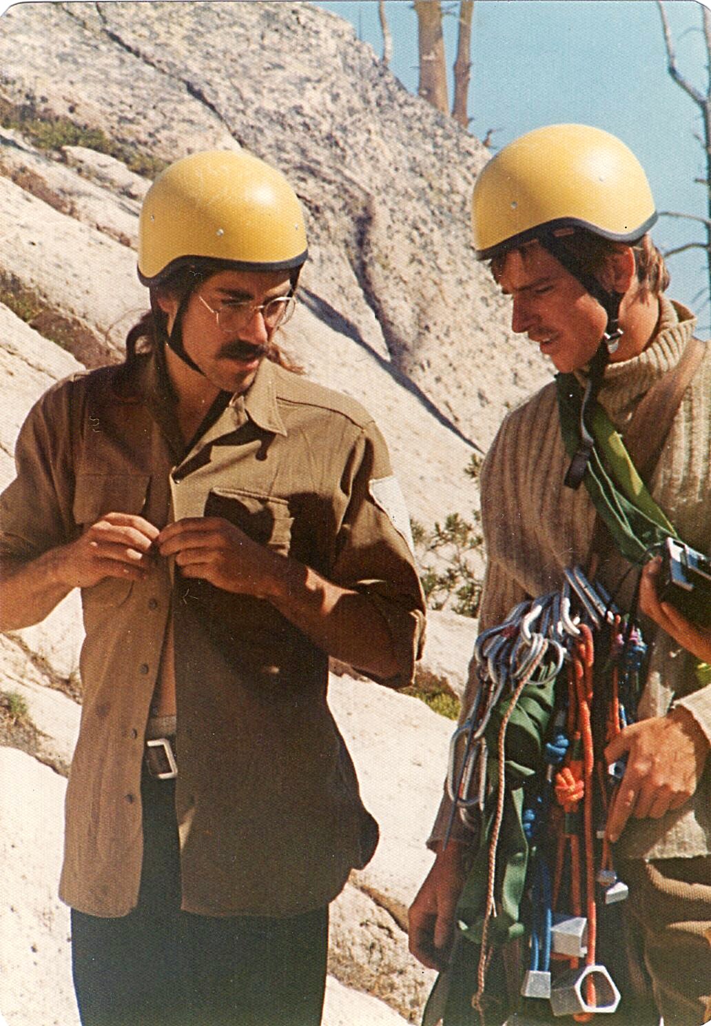 On July 4th, 1973, Bill Whitman (19 years old) and I (18 years old) made the first ascent of the North Face of Snowslide Peak. We took my brother Jim Cockey’s rack of Lost Arrow pitons and around ten Bongs and my diminutive rack of nuts and chocks along with one 90-foot length of Goldline nylon rope and an assortment of white slings, also on loan from my brother.
