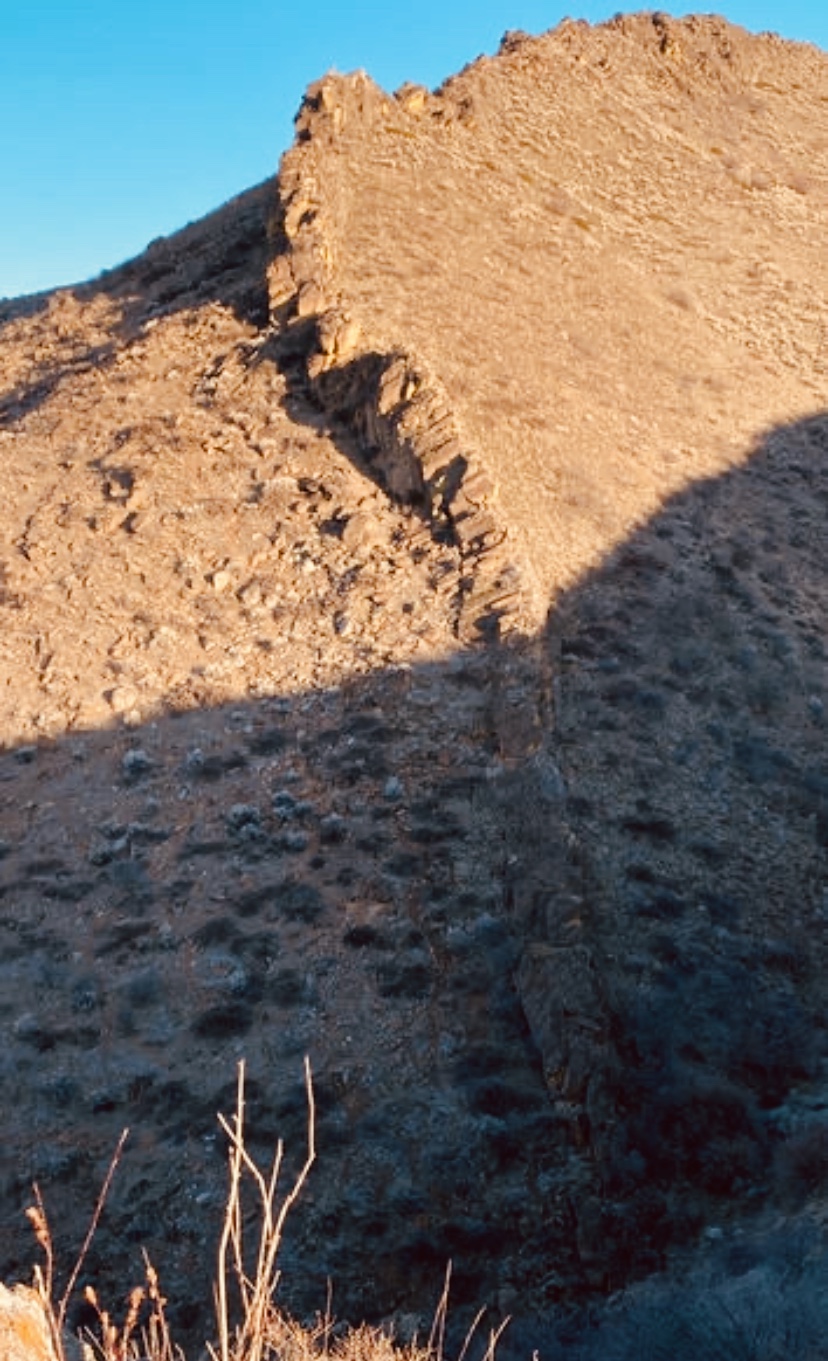 The Rock Fin. The beginning of the ridge starts at an intersecting creek bed. This first section is steep, fun, and ends shortly after a rock fin.
