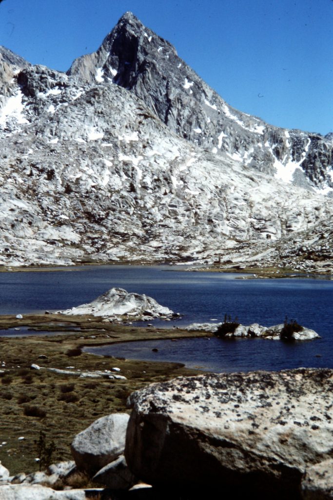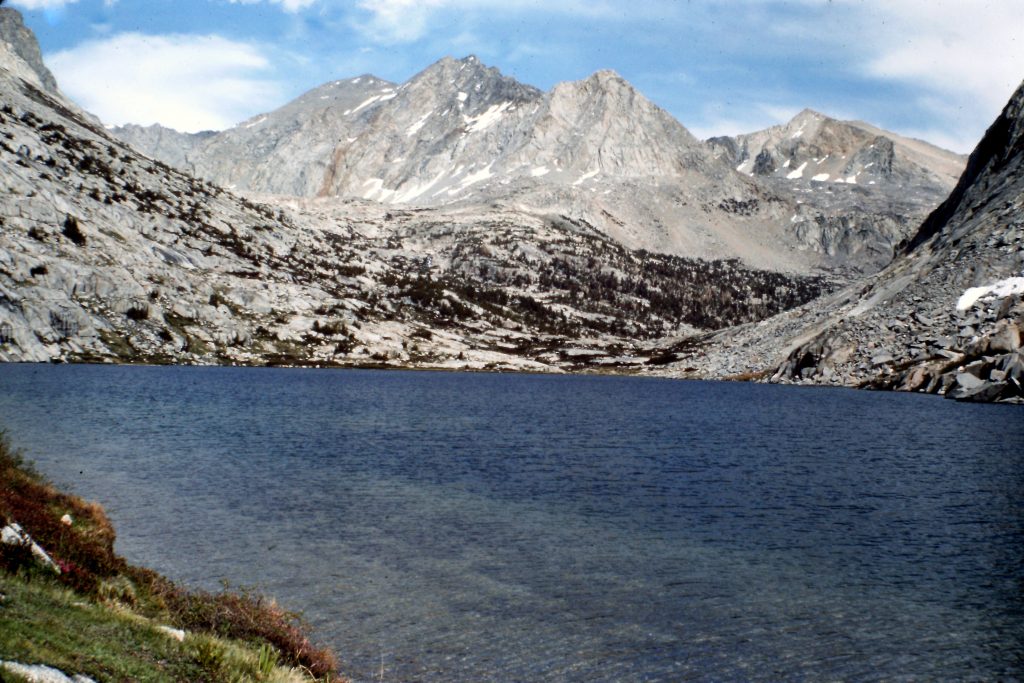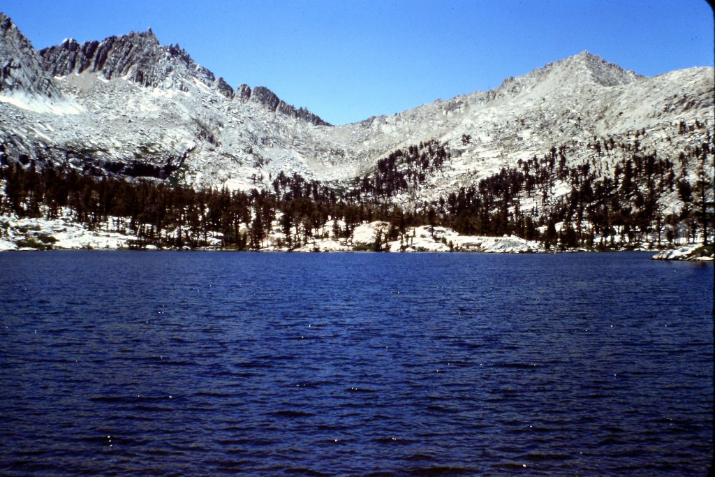 As much as I wanted to hang out at the Ranger Station, I got moving again on the 7th day and climbed up the JMT to Palisades Lake (10,613 feet). Palisades Canyon is an impressive canyon with plenty of glacially-polished rock (I had previously descended the canyon in 1975). It was another long day: 11 miles of hiking with significant elevation gain.